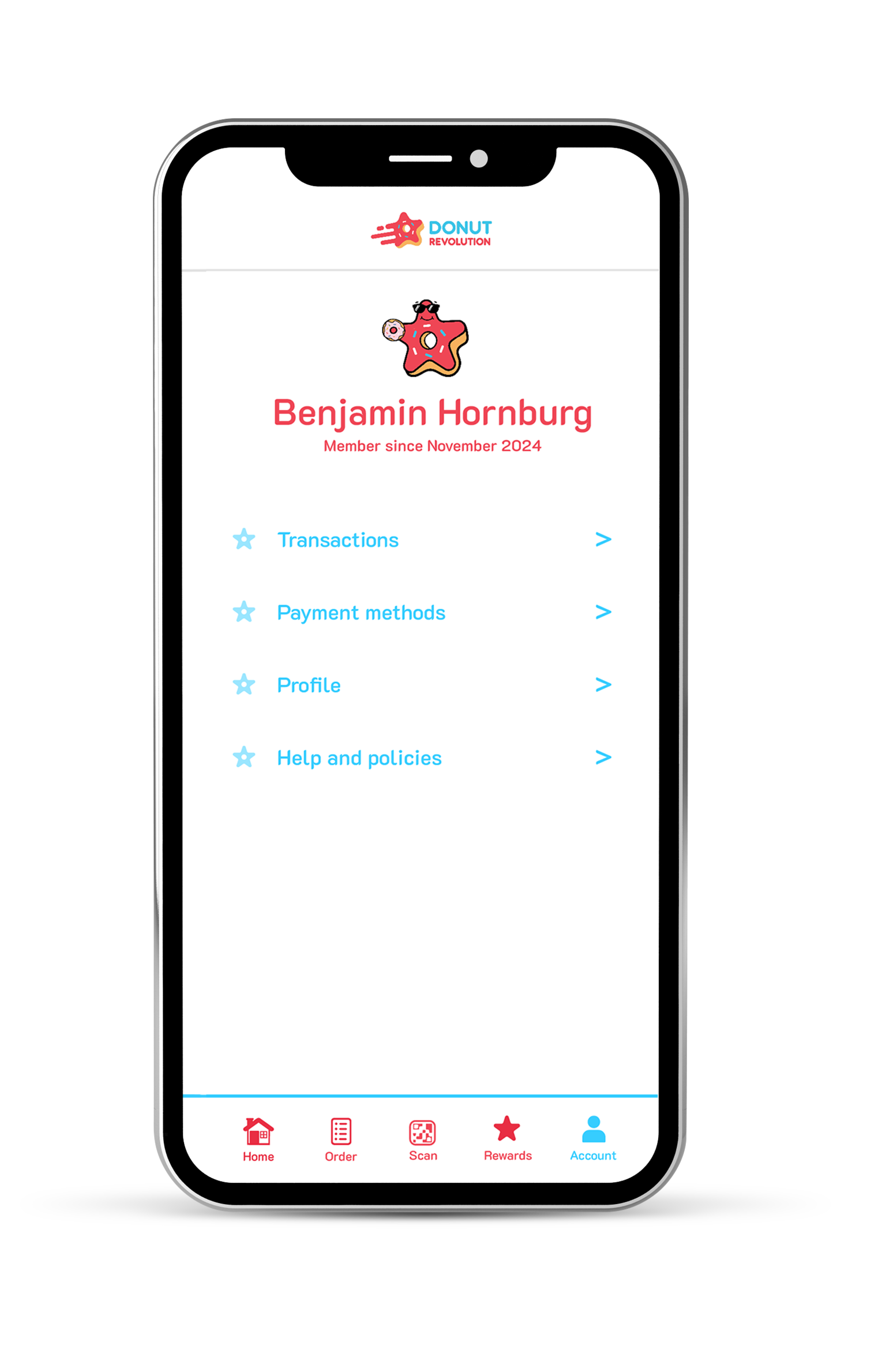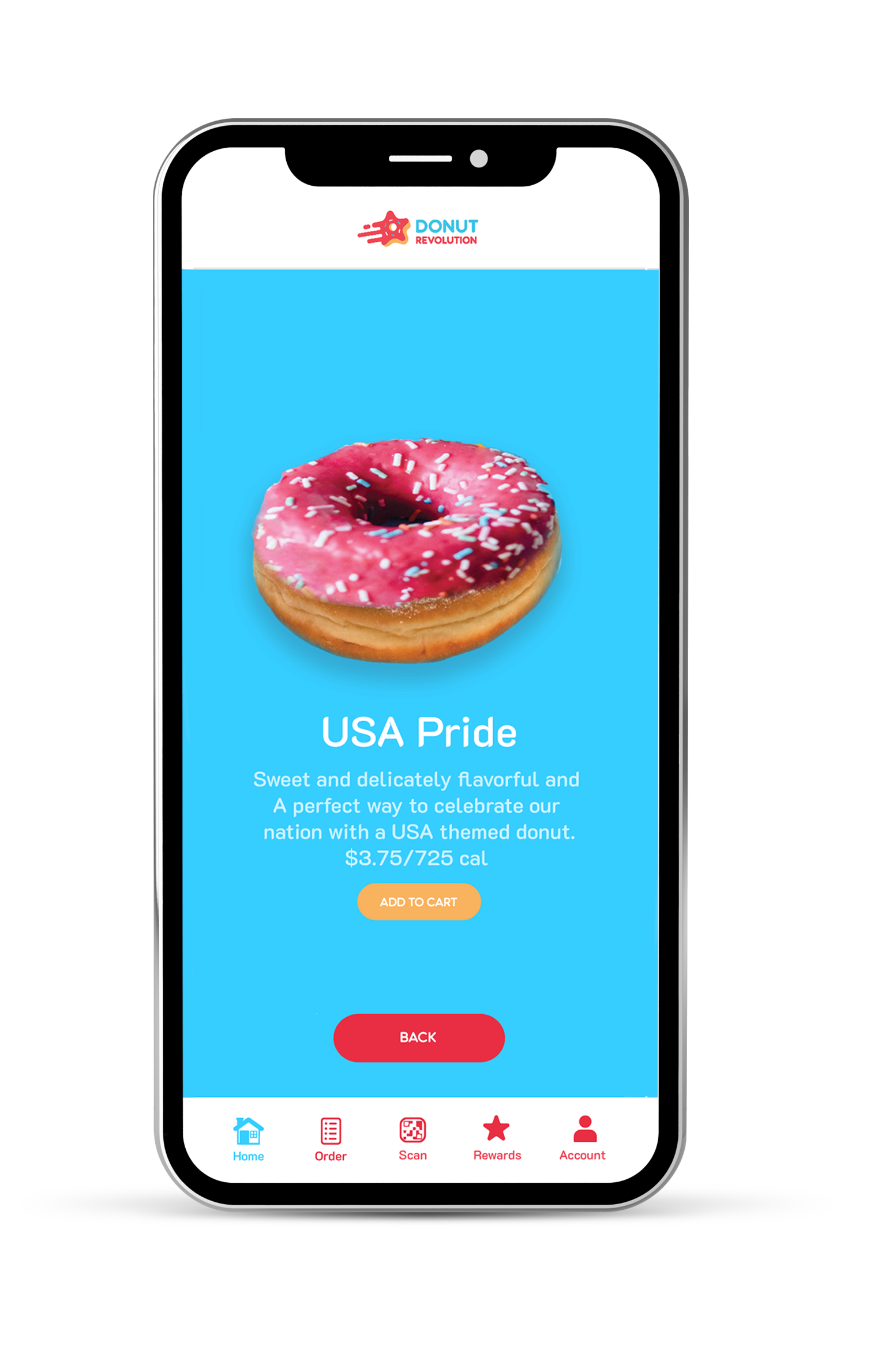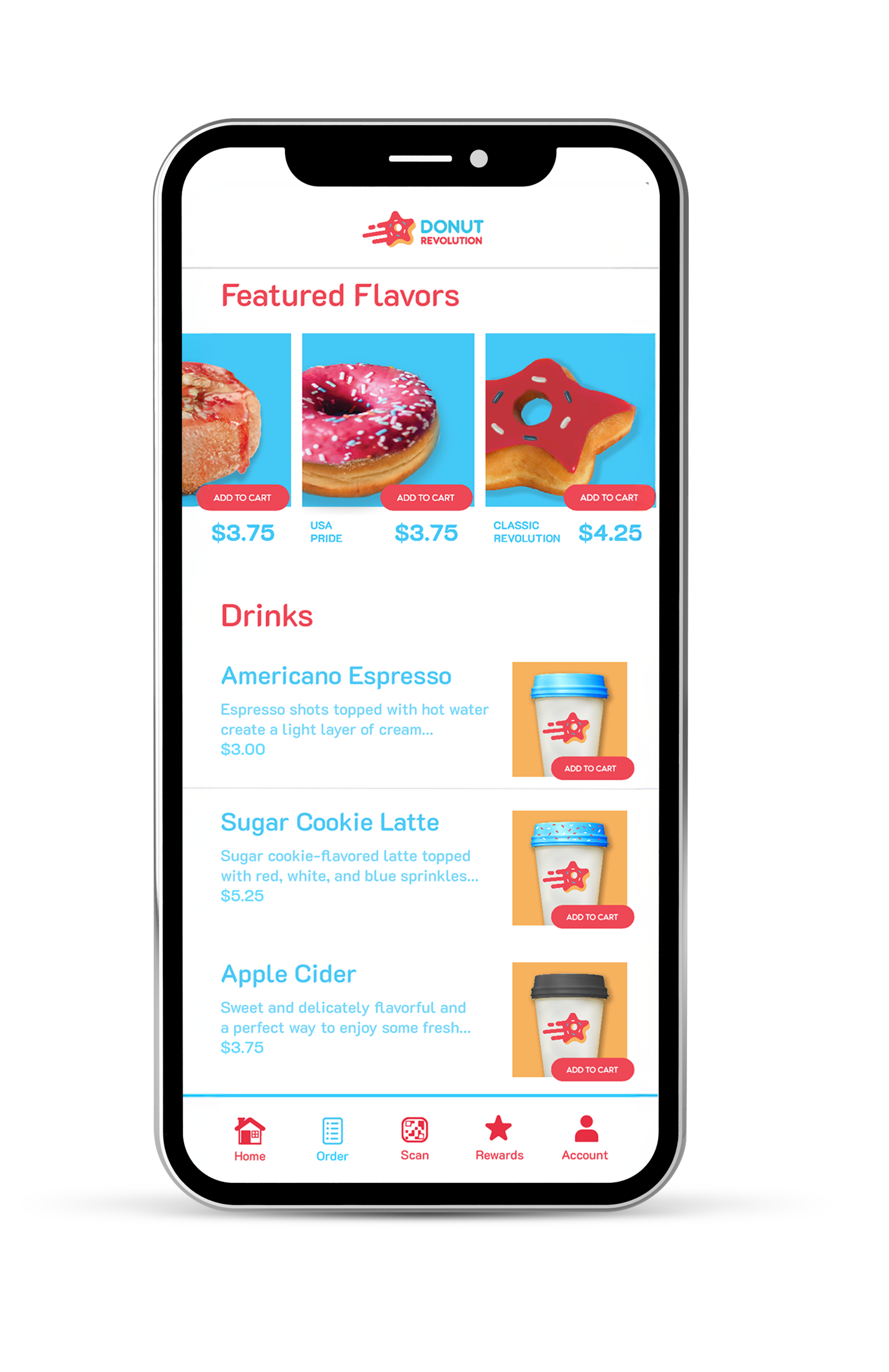 The design system emphasizes a modern and energetic visual identity across the app. Donut Revolution positions itself as an alternative to traditional chains like Dunkin’ and Krispy Kreme by focusing on unique offerings, high-quality ingredients, and a distinctive customer experience. To view the app prototype, click here.